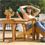 The side table serves two purposes. It is tall enough to be used as a serving table, while low enough to be used for resting food, drinks, and books.